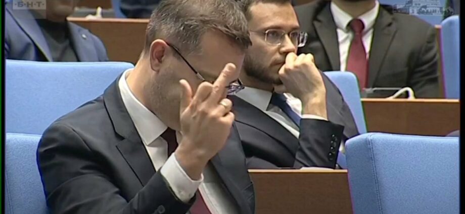 Камерите на националната телевизия излъчват заседание „на живо“, а той, от стола на властта, вдига среден пръст.